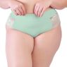Calcinha cintura alta modelagem plus size, desenvolvida em poliamida com dupla camada na cintura, oferecendo extremo conforto e leve compressão para as gordurinhas indesejadas. O recorte em renda na lateral da lingerie é um charme a parte.
