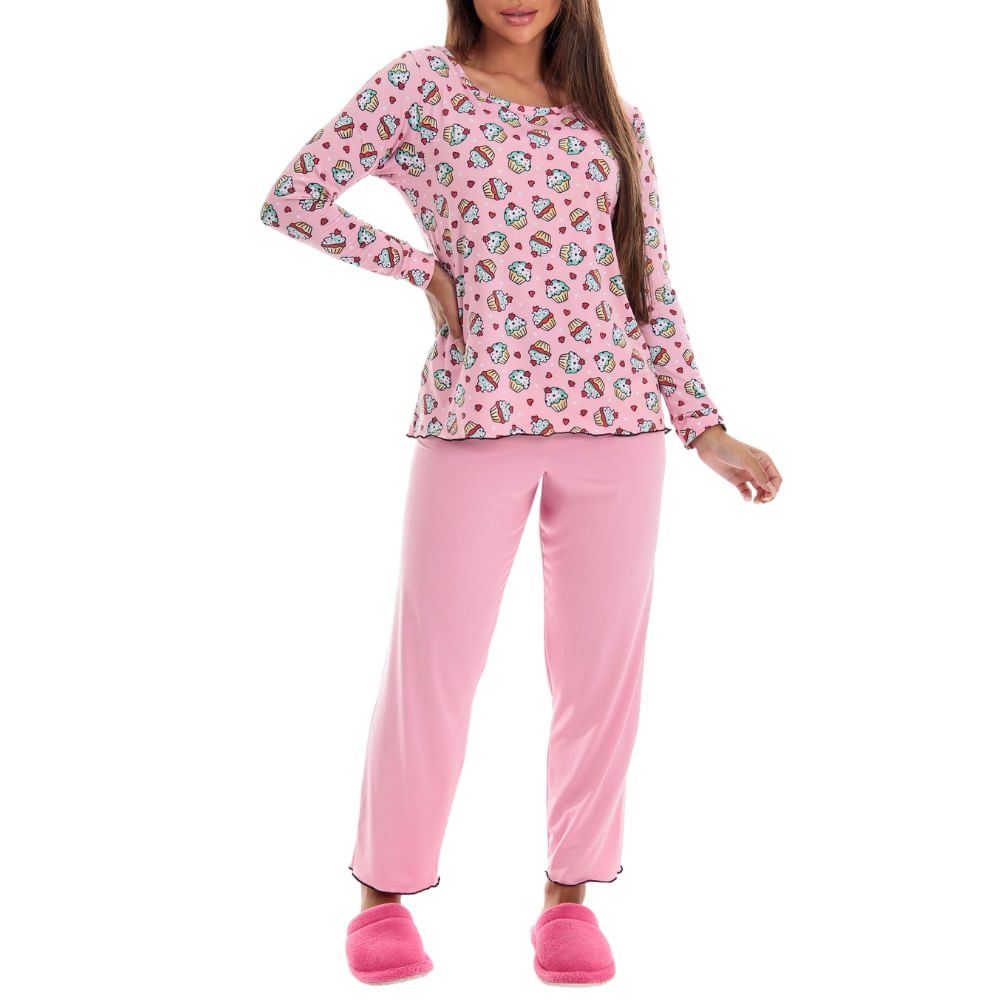 Itens inclusos: 1 blusa estampada de manga longa, 1 calça lisa